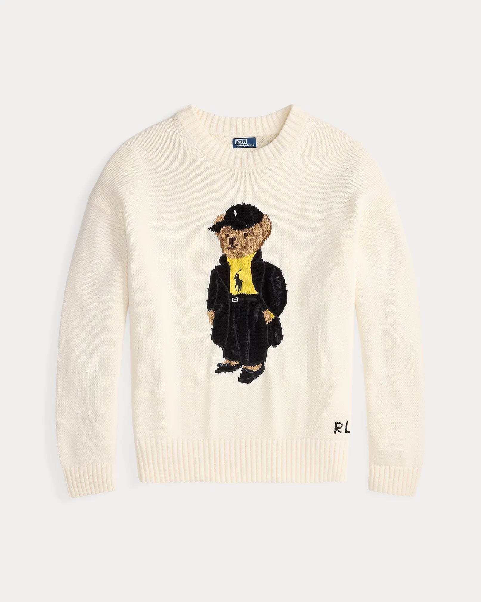 - Polo Bear intarsia-knit at the front. “RL” cross-stitched at the left hem.