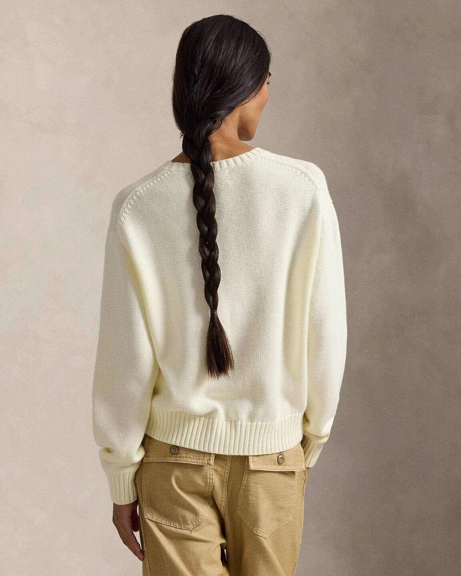 - Polo Bear intarsia-knit and embroidered at the front. "RL" cross-stitched at the left hem.